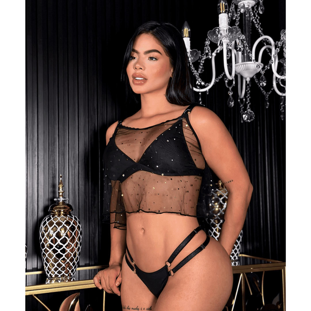 Conjunto Top Blusa FET-138 Lencería Sexy en SexShop Cali, Conjunto femenino intimo de tres piezas perfecto para cumplir las fantasías de tu pareja.