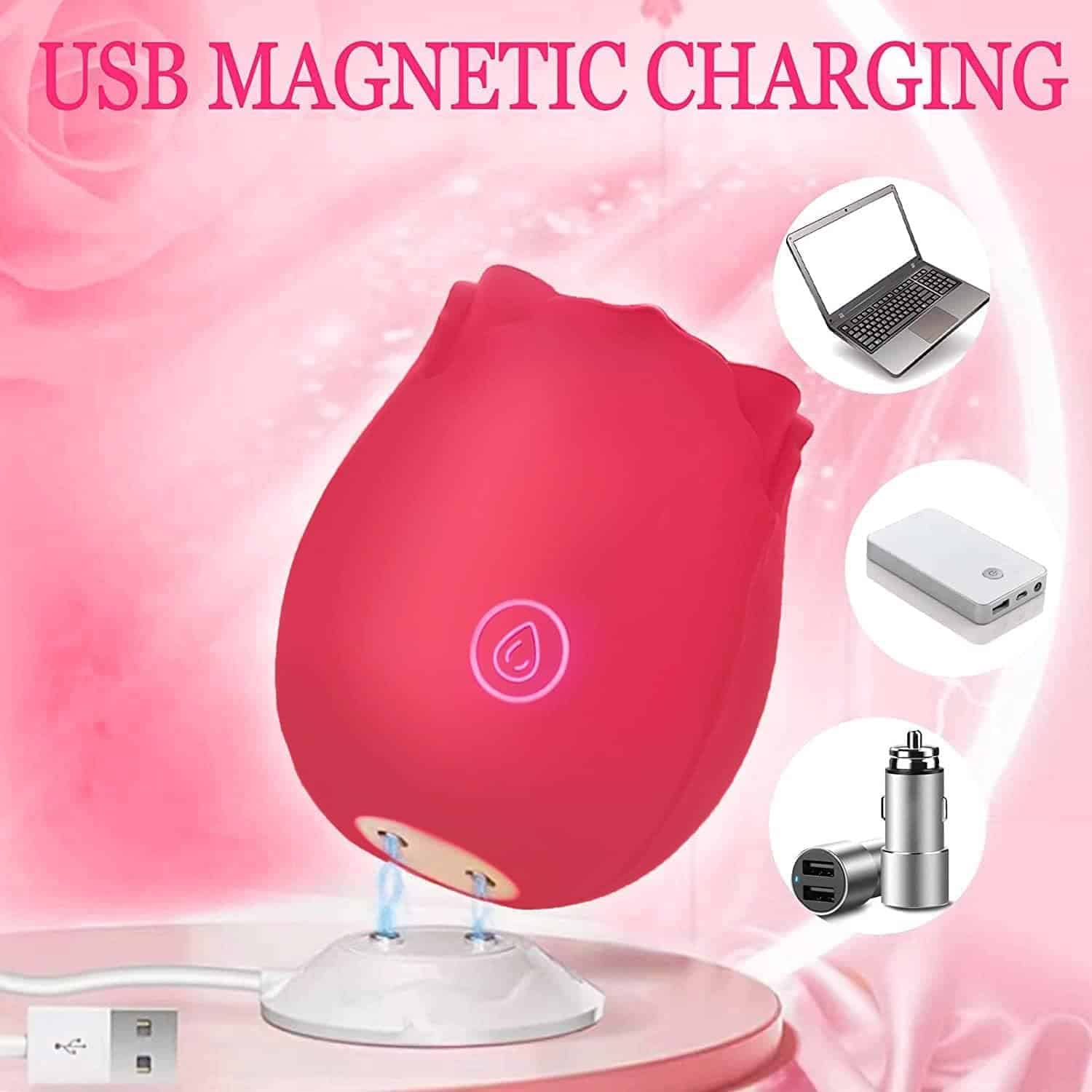 Vibrador Succionador Rosa Rose Juguetes sensuales en Cali, toy Intimo Femenino recargable, ideal para estimular clítoris o zonas erógenas